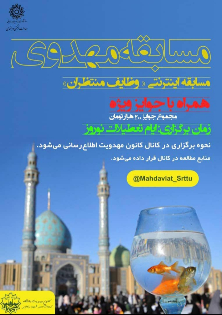 🔹 کانون مهدویت در ایام نوروز برگزار میکند: #مسابقه_مهدوی با موضوع “وظایف منتظران