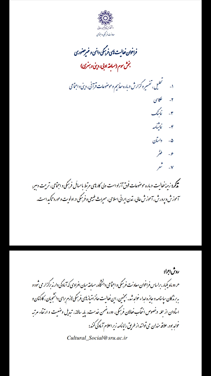 معاونت فرهنگی و اجتماعی : فراخوان فعالیت های فرهنگی دائمی و غیرحضوری بخش سوم