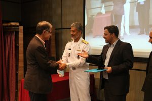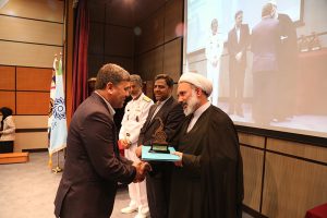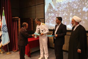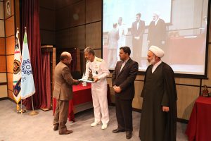 امیر دریادار دکتر سیاری نیز با ارائه توضیحاتی نقش راهبردی نیروی دریایی را بیان نمود و پس از آن تفاهم نامه به امضای ایشان و رئیس دانشگاه رسید. در پایان برنامه از معلم نمونه کشوری دانشگاه، دکتر محمد شمس اسفندآبادی و ۱۶ استاد نمونه دانشگاه و دو مدیر گروه نمونه تقدیر به عمل آمد. شایان ذکر است اساتید نمونه بر اساس شیوه نامه مصوب شورای آموزشی دانشگاه انتخاب گردیدند که در آن به همه اساتید در گروه های آموزشی بر مبنای شاخص های کیفی و کمی آموزشی توسط مدیران گروه های آموزشی و اعضای شورای آموزشی و پژوهشی دانشکده امتیازاتی اختصاص پیدا کرد. با اضافه شدن امتیازات پژوهشی، اجرایی و فرهنگی، امتیازات کل تعیین گردید که ملاک تعیین اساتید نمونه بوده است. البته وزن امتیازات آموزشی ۶۵% کل امتیازات بوده است.