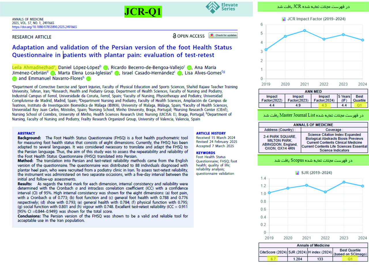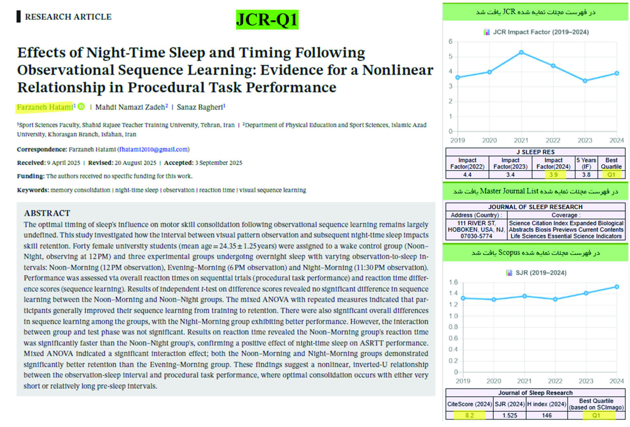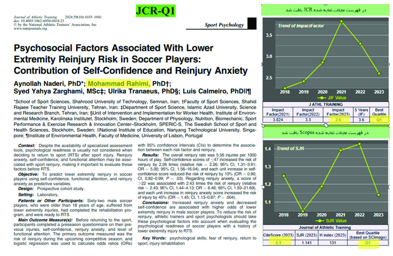 موفقیت اعضای هیأت علمی دانشکده علوم ورزشی در چاپ مقالات JCR-Q1