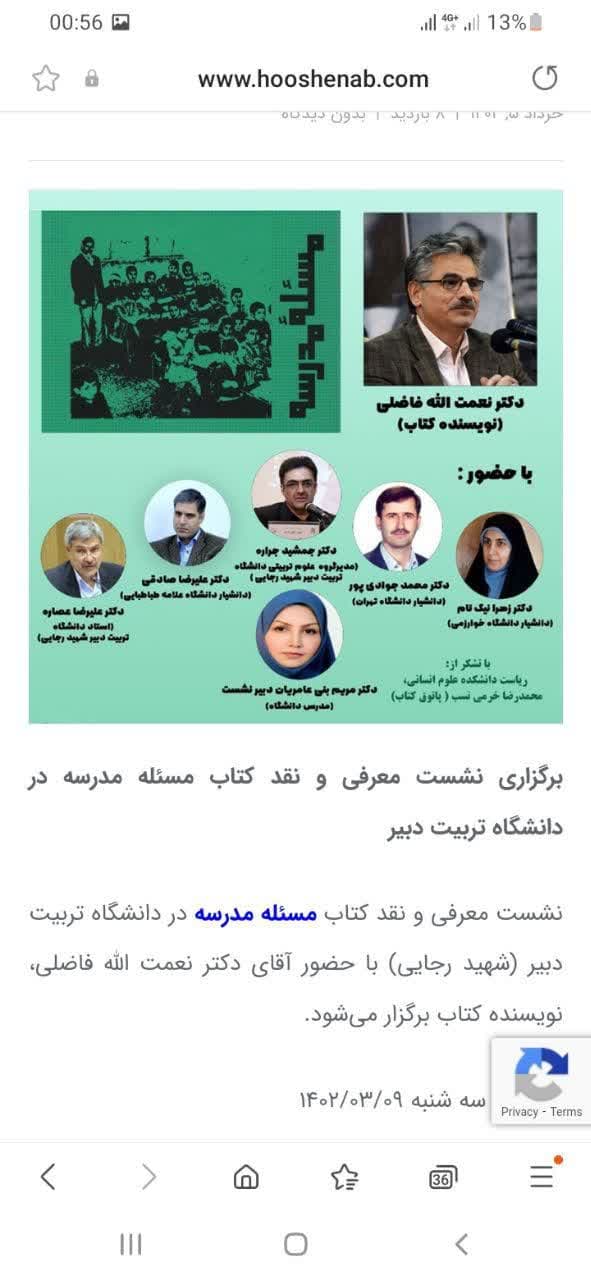 قرار گرفتن خبر نشست معرفی و نقد و بررسی کتاب مسئله مدرسه در سایت انتشارات هوش ناب