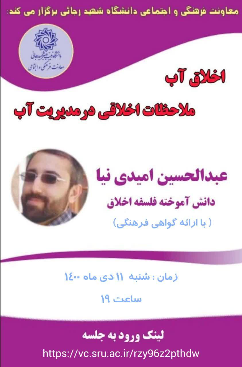 وبینار اخلاق آب با سخنرانی استاد امیدی نیا