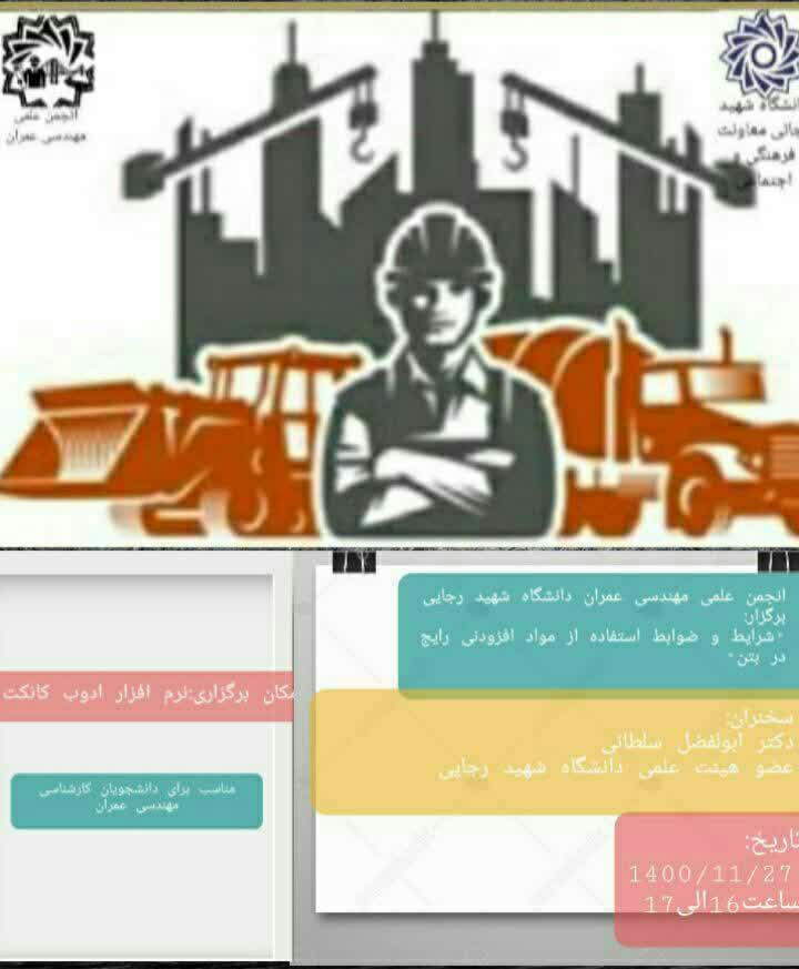 🌀وبینار شرایط و ضوابط استفاده از افزودنی های رایج در بتن🌀 برگزار می گردد.