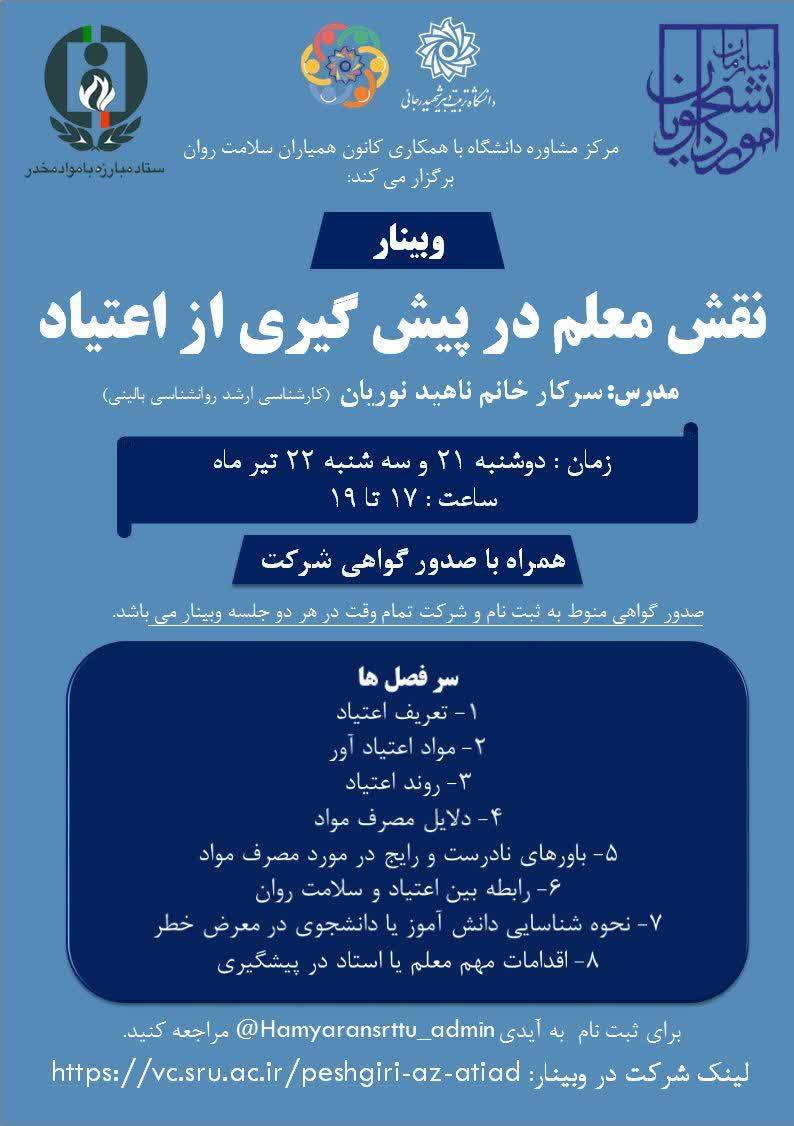 وبینار نقش معلم در پیشگیری از اعتیاد