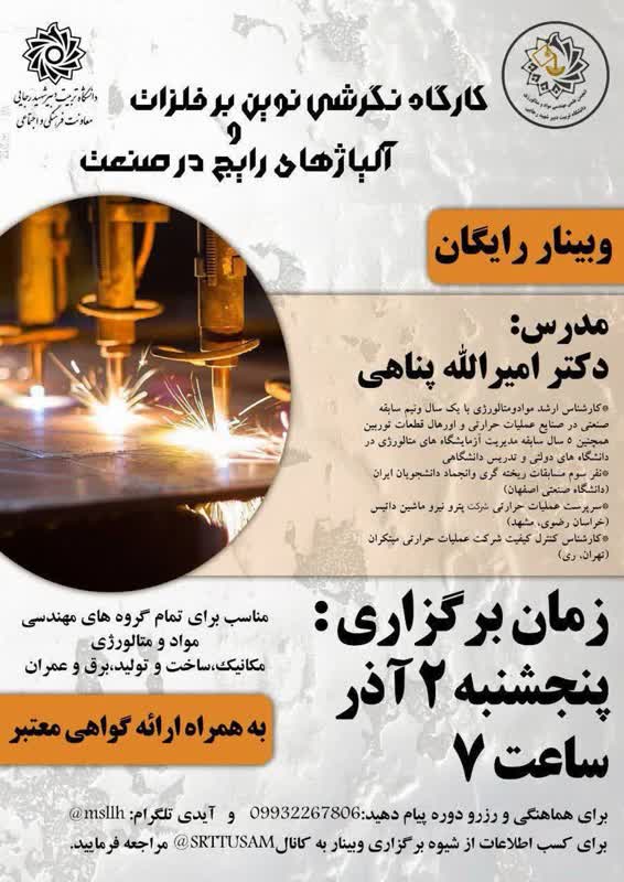 وبینار کارگاه آموزشی نگرش نوین بر فلزات و آلیاژهای رایج در صنعت