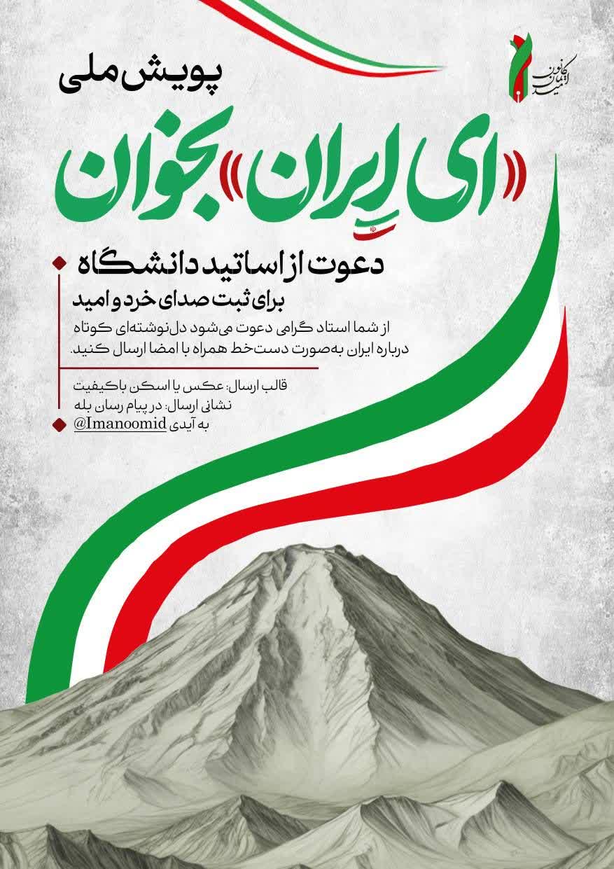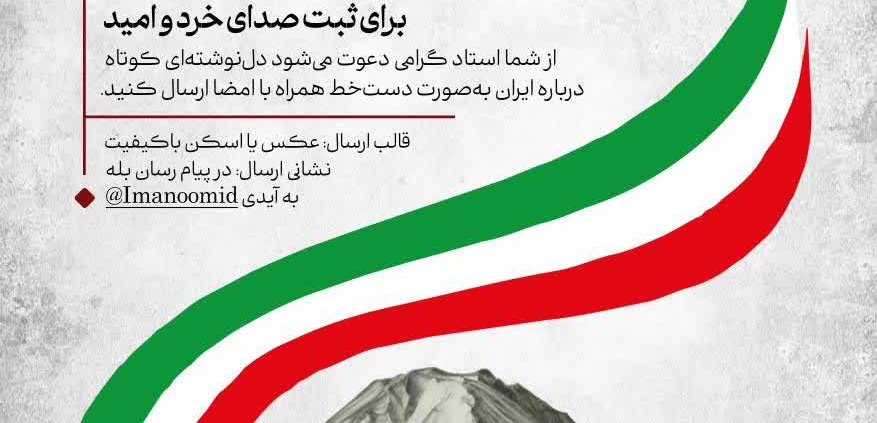 از استادان ارجمند دانشگاه دعوت میشود نوشتهای کوتاه درباره ایران عزیز بهصورت دستخط همراه با امضا ارسال فرمایند.