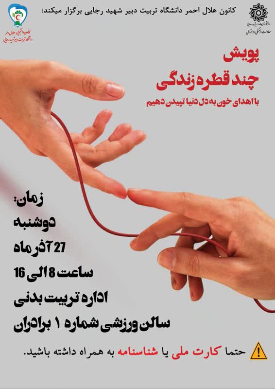 - کانون هلال احمر دانشگاه تربیت دبیر شهید رجایی به مناسبت ایام فاطمیه برگزار می کند؛