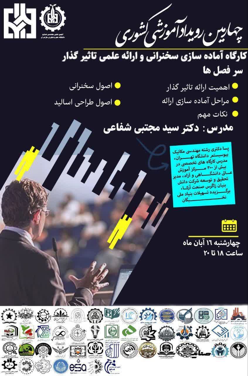 چهارمین رویداد آموزشی کشوری کارگاه آماده سازی سخنرانی و ارائه علمی تاثیرگذار