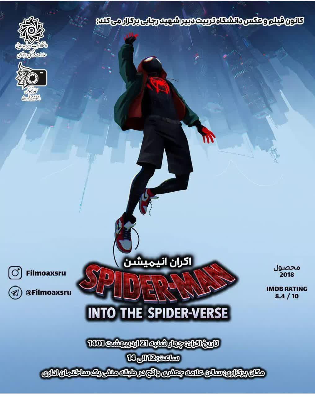 چهار شنبه های سینمایی ( اکران پویانمایی مرد عنکبوتی محصول ۲۰۱۸ ) ۲۵ اردیبهشت ۱۴۰۱/در Uncategorised, اخبار معاونت فرهنگی و اجتماعی /توسط culture📣 معاونت فرهنگی و اجتماعی دانشگاه خبر داد؛ 🎬چهار شنبه های سینمایی 🔷به همت کانون فیلم و عکس برگزار می گردد: 🔴 اکران پویانمایی مرد عنکبوتی محصول ۲۰۱۸ 🚪مکان: سالن علامه جعفری، واقع در طبقه ۱_ ساختمان اداری ⏰ زمان: چهارشنبه ۱۴۰۱/۲/۲۱ ساعت ۱۴_۱۲ https://www.sru.ac.ir/wp-content/uploads/2022/05/photo_۲۰۲۲-۰۵-۱۰_۰۸-۳۹-۳۶.jpg 1280 1016 culture https://www.sru.ac.ir/wp-content/uploads/2020/06/arm-uni-97-white-300x300.png culture2022-05-15 12:14:272022-05-15 12:14:53چهار شنبه های سینمایی ( اکران پویانمایی مرد عنکبوتی محصول ۲۰۱۸ )