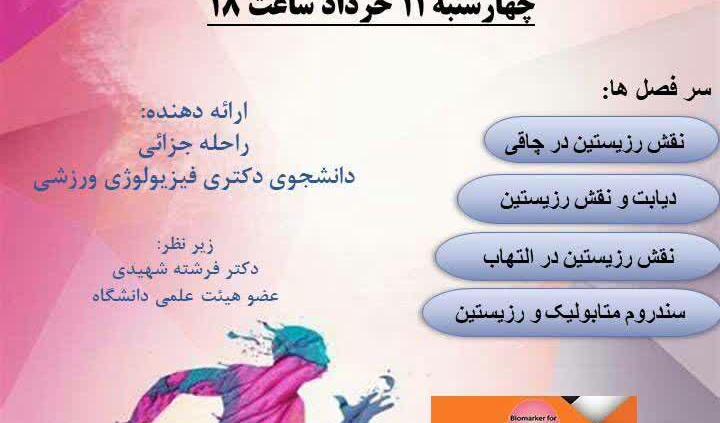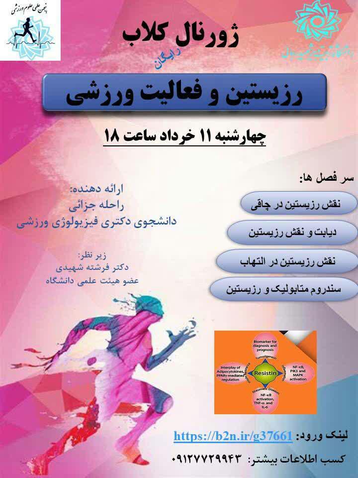 🔵 معاونت فرهنگی و اجتماعی خبر داد: 📣 به همت انجمن علمی علوم ورزشی دانشگاه تربیت دبیر شهید رجایی برگزار می گردد : ژورنال کلاب رزیستین و فعالیت ورزشی