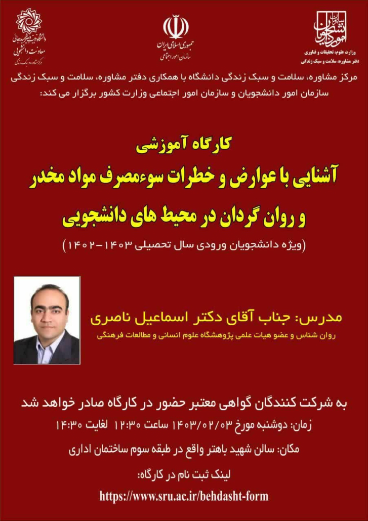 کارگاه آموزشی آشنایی با عوارض و خطرات سوء مصرف مواد مخدر و روان گردان در محیط های دانشجویی