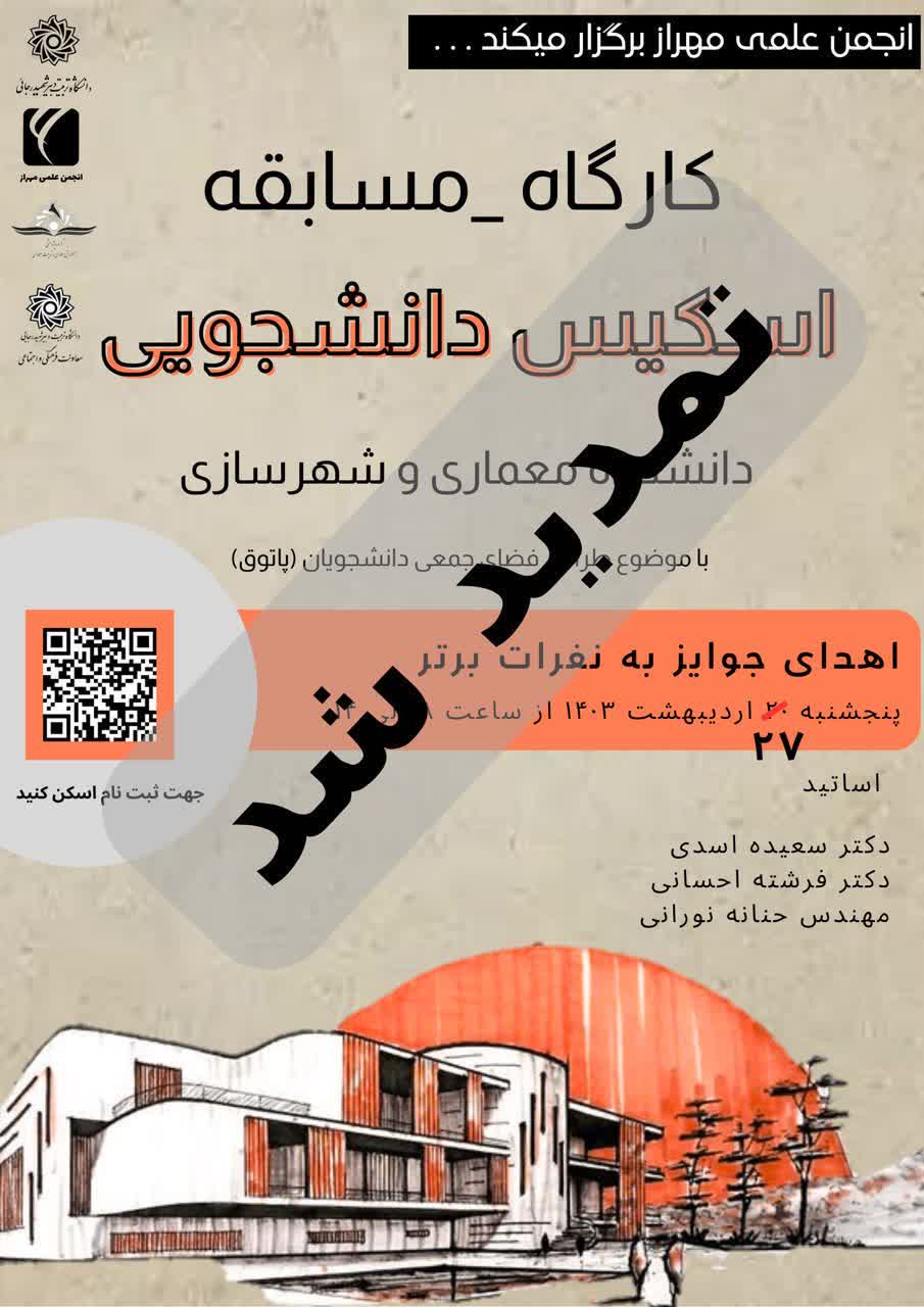 به همت انجمن علمی دانشجویی معماری دانشگاه تربیت دبیر شهید رجایی برگزار می گردد :