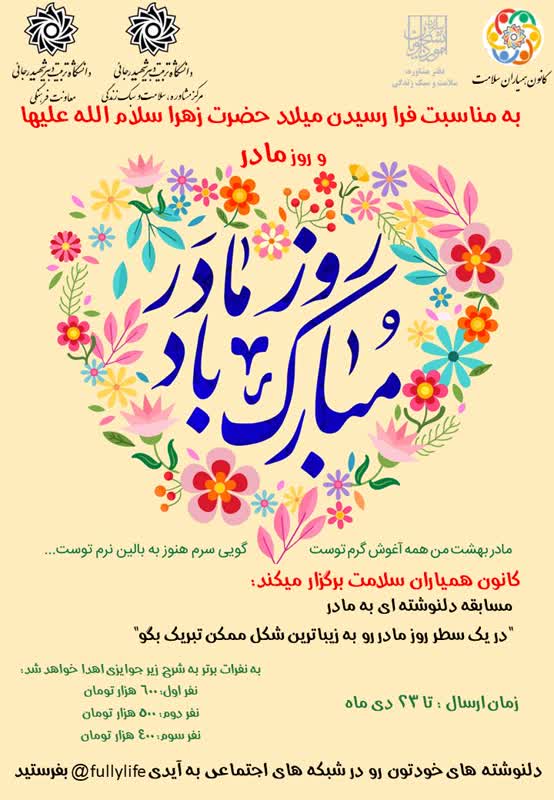 کانون همیاران سلامت به مناسبت ولادت حضرت فاطمه (س) و روز مادر برگزار می کند: جمله ای ناب و محبت آمیز به مناسبت روز مادر