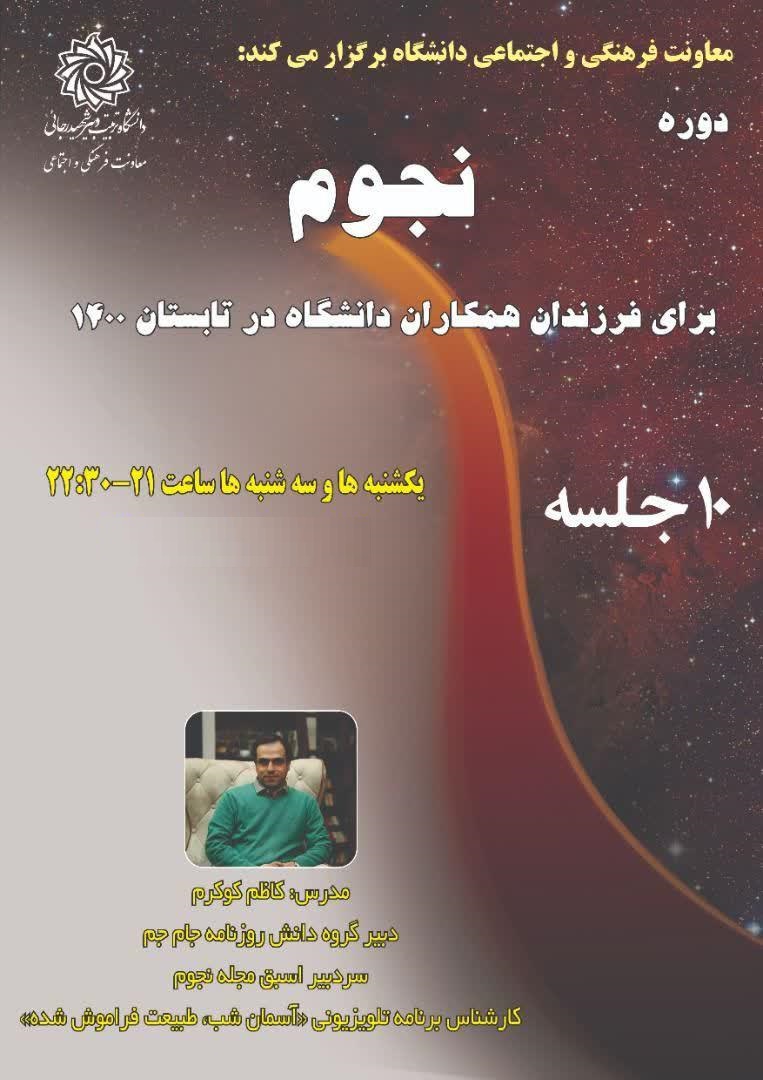 🔴کلاس نجوم ویژه فرزندان اساتید و کارمندان محترم دانشگاه در تابستان ۱۴۰۰ ( شروع کلاس های از سه شنبه هفته جاری) ⏰ یک شنبه ها و سه شنبه ها ساعت ۱۲-۰۳:۲۲