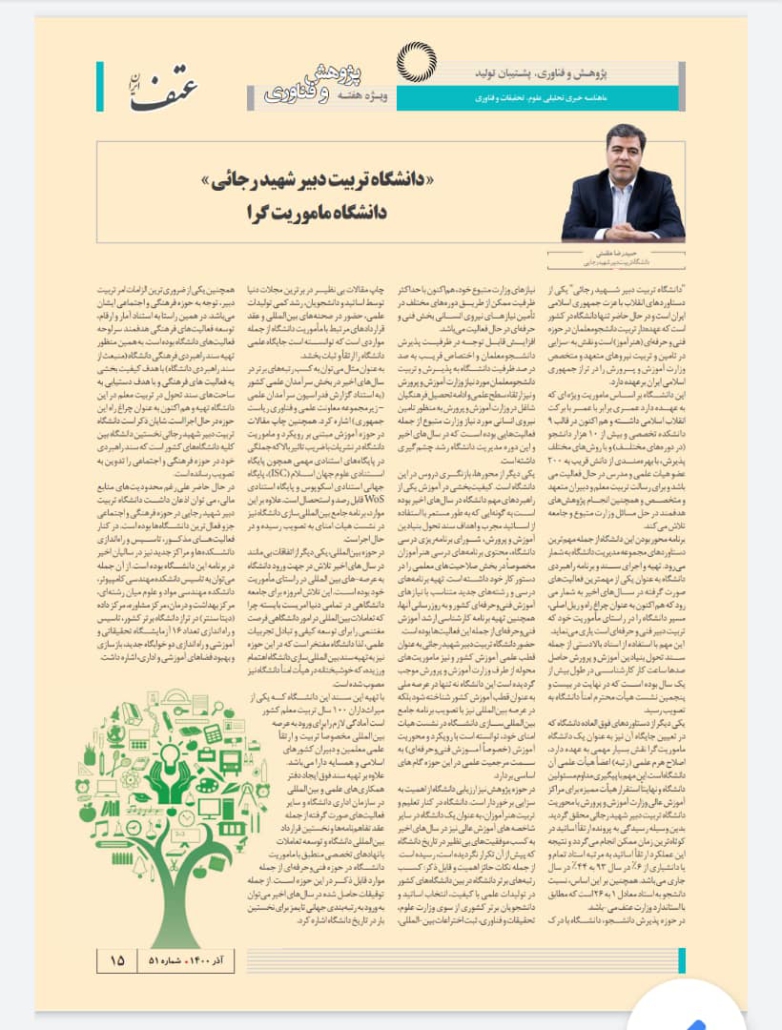 یادداشت رئیس دانشگاه در پنجاه و یکمین ویژه نامه عتف