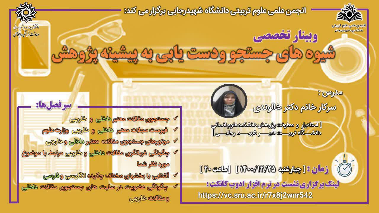🔴 هدیه انجمن علمی علوم تربیتی دانشگاه شهیدرجایی ✨ویژه تمام دانشجویان تحصیلات تکمیلی و پژوهشگران جهت استفاده از فرصت تعطیلات نوروز✨