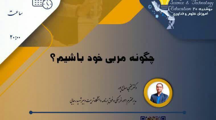 *برنامه دوشنبه ۲۰ – آموزش علوم وفناوری* در راستای ترویج علم هر دوشنبه ساعت ۲۰ به مدت ۲۰ دقیقه توسط دانشگاه تربیت دبیر شهید رجایی (معاونت فرهنگی و اجتماعی دانشگاه ، دانشکده علوم پایه و انجمن علمی دانشجویی آموزش علوم) به صورت الکترونیکی برگزار می شود.
