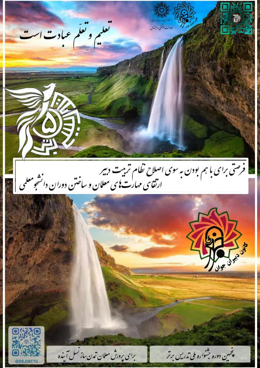 🧑🏻🏫 شرکت در جشنواره #تدریس_برتر و حضور در جمع دبیران جوان، فرصتی برای با هم بودن و حرکت به سوی اصلاح نظام تربیت دبیر، کسب توانمندی تدریس، تقویت مهارتهای معلمان و ساختن دوران ارزشمند دانشجو معلمی؛ تدریس همچون #آبشار_دانش است.