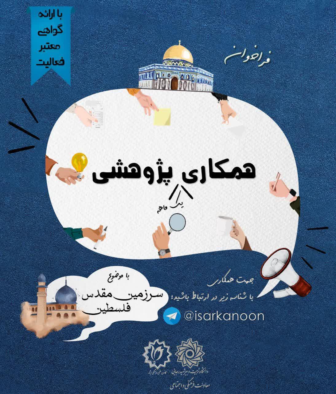 👥 از تمام علاقهمندان به تحقیق و پژوهش دعوت میشود جهت همکاری با شناسه زیر در تلگرام در ارتباط باشید: