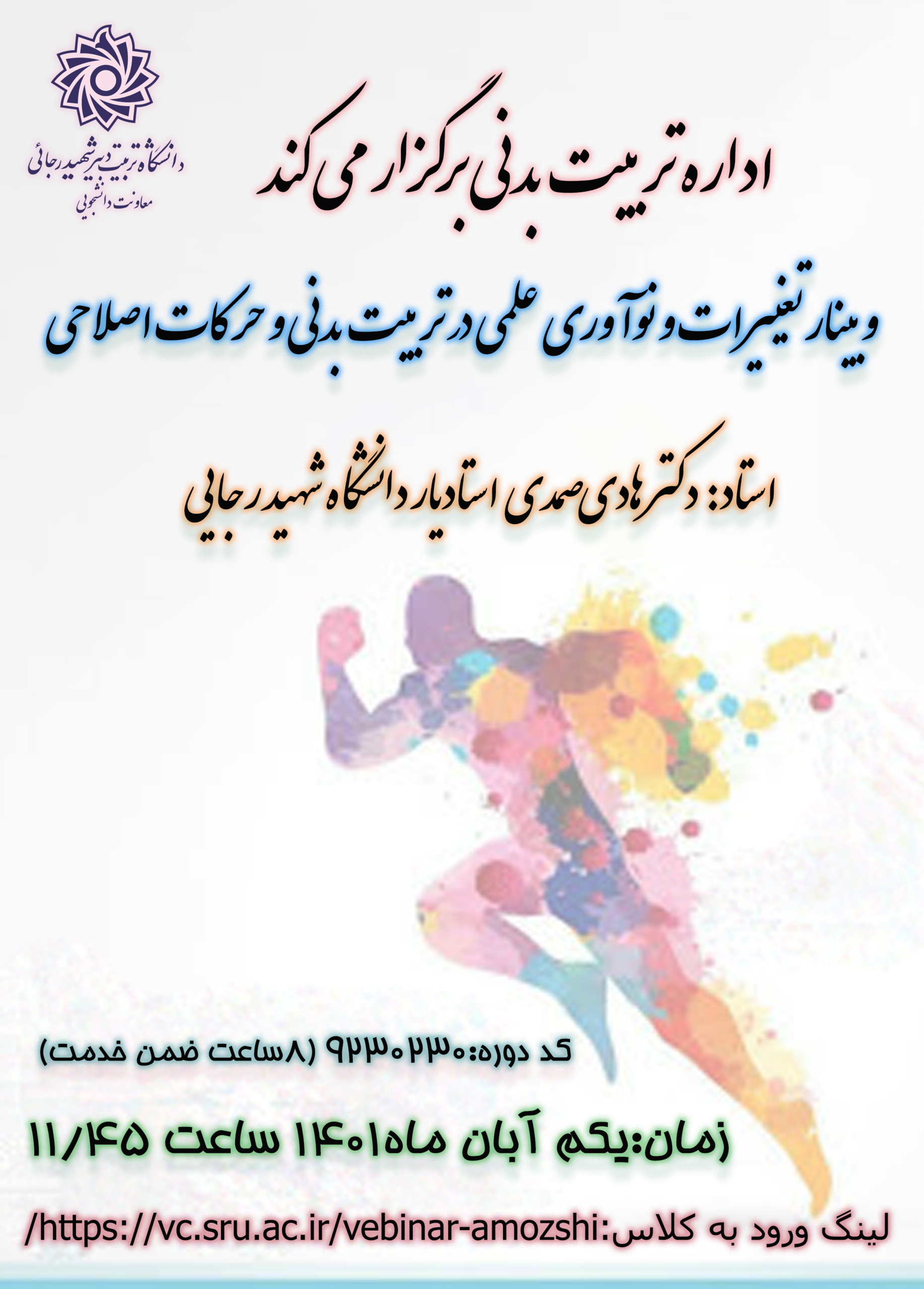 https://www.sru.ac.ir/wp-content/uploads/2022/10/01234.jpg214235اداره تربیت بدنیhttps://www.sru.ac.ir/wp-content/uploads/2020/06/arm-uni-97-white-300x300.pngاداره تربیت بدنی2022-10-19 14:36:592022-10-22 10:53:22وبینار تغییرات و نوآوری علمی در تربیت بدنی و حرکات اصلاحی