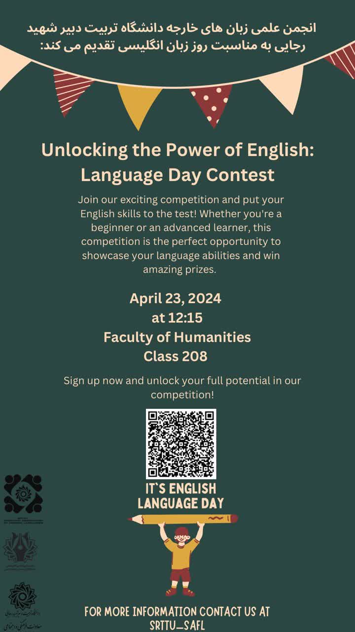 انجمن علمی دانشجویی زبان های خارجه دانشگاه تربیت دبیر شهید رجایی به مناسبت روز زبان انگلیسی تقدیم میکند: