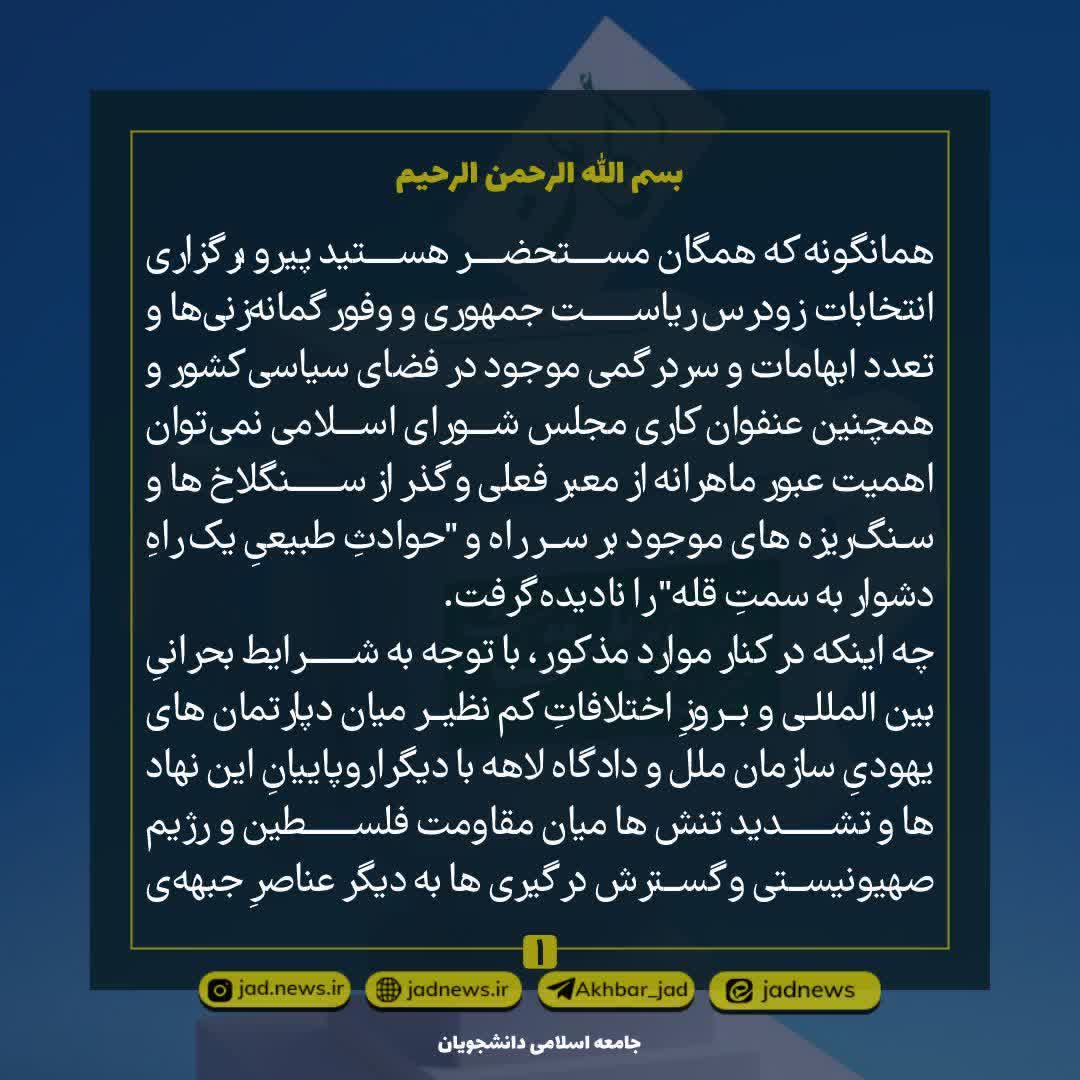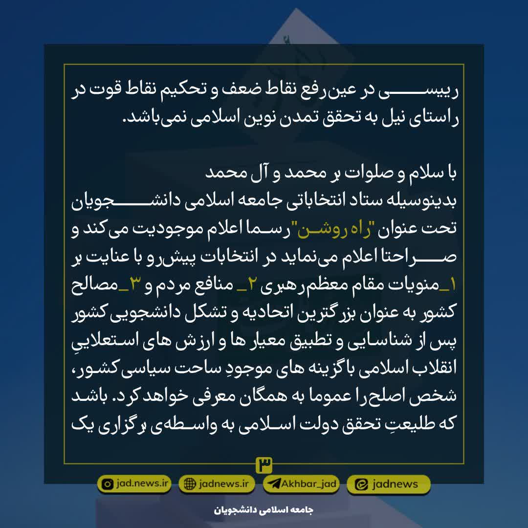 بیانیه اعلام موجودیت ستاد انتخاباتی اتحادیه جامعه اسلامی دانشجویان «راه روشن»