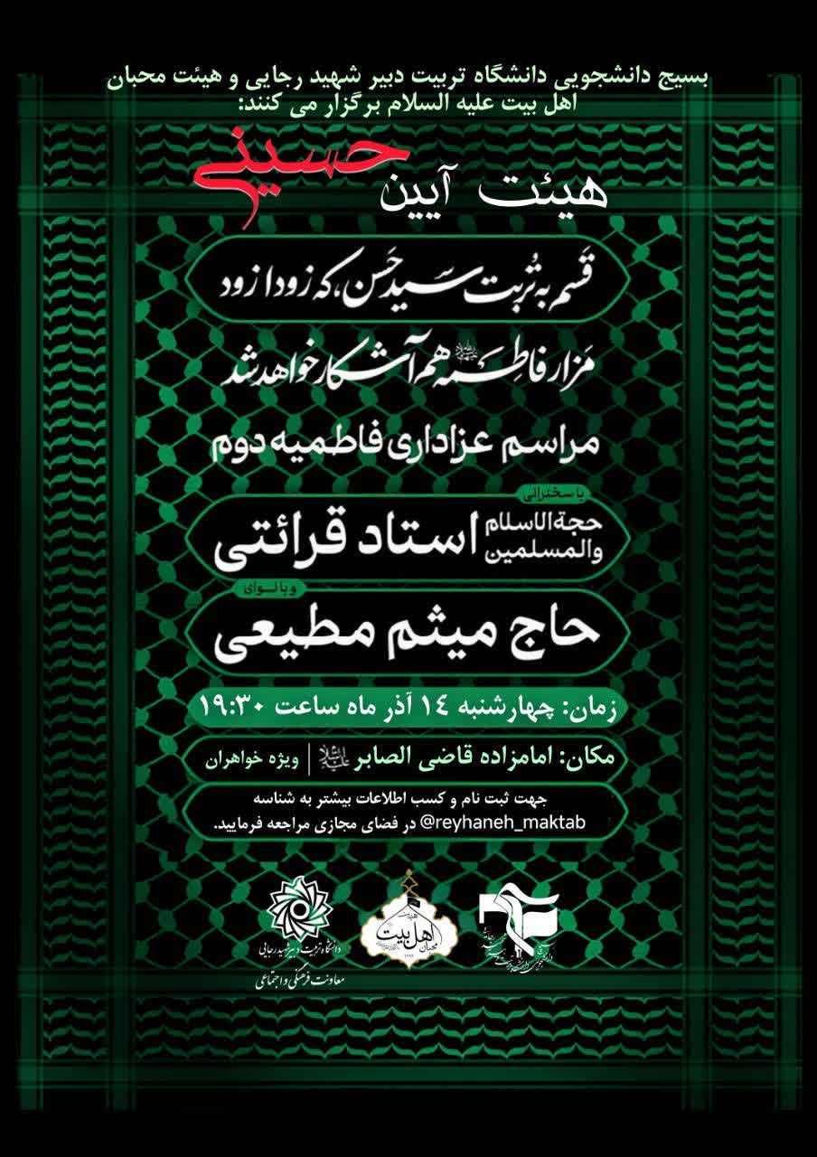 بسیج دانشجویی دانشگاه تربیت دبیر شهید رجایی و هیئت محبان اهل بیت علیه السلام برگزار میکنند :